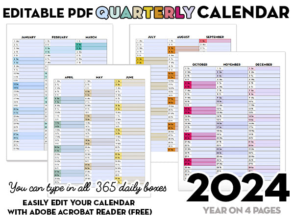 EDITABLE PDF 2024 QUARTERLY Calendar Rainbow – Lovely Planner