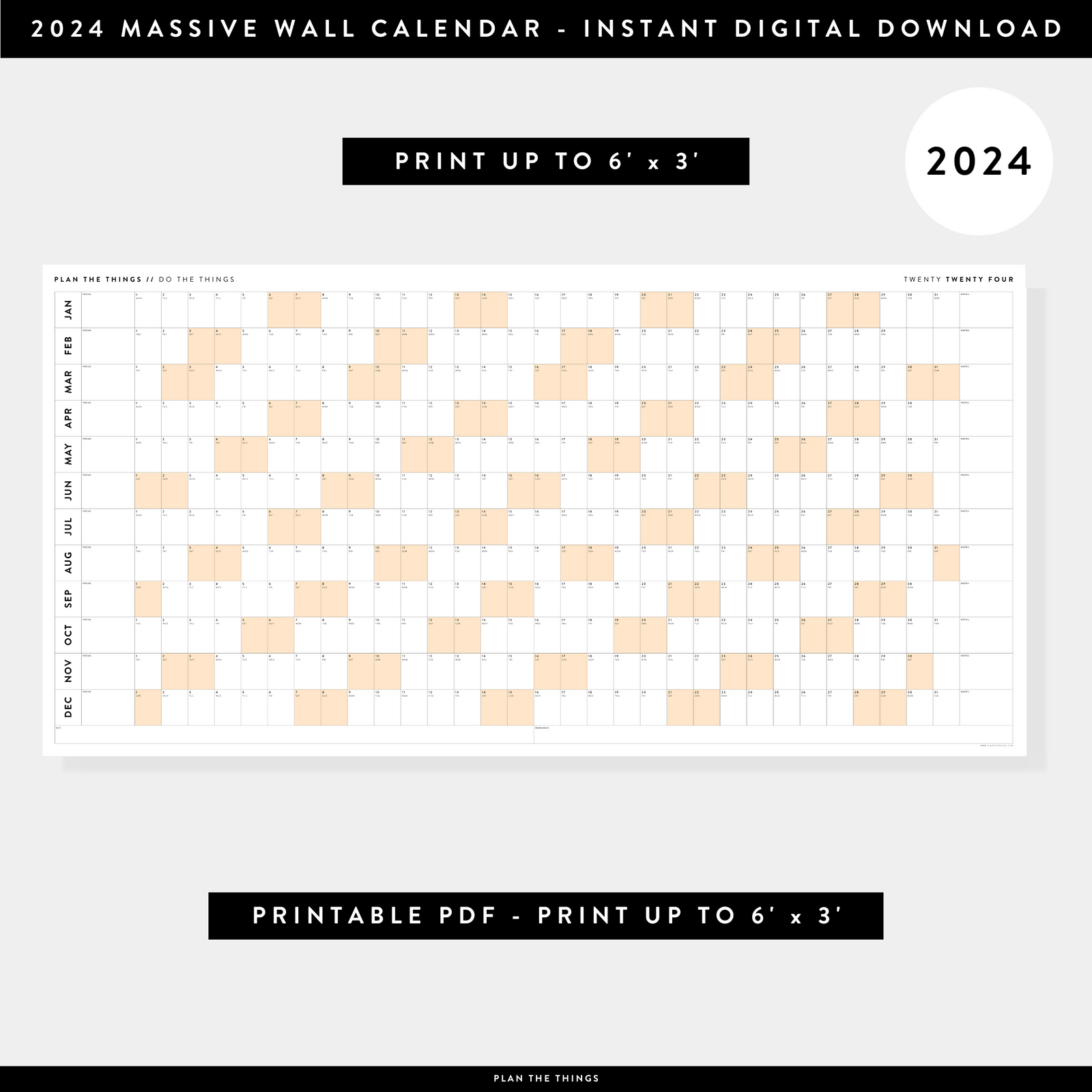 PRINTABLE MASSIVE 2024 ANNUAL CALENDARS // INSTANT DOWNLOAD Plan